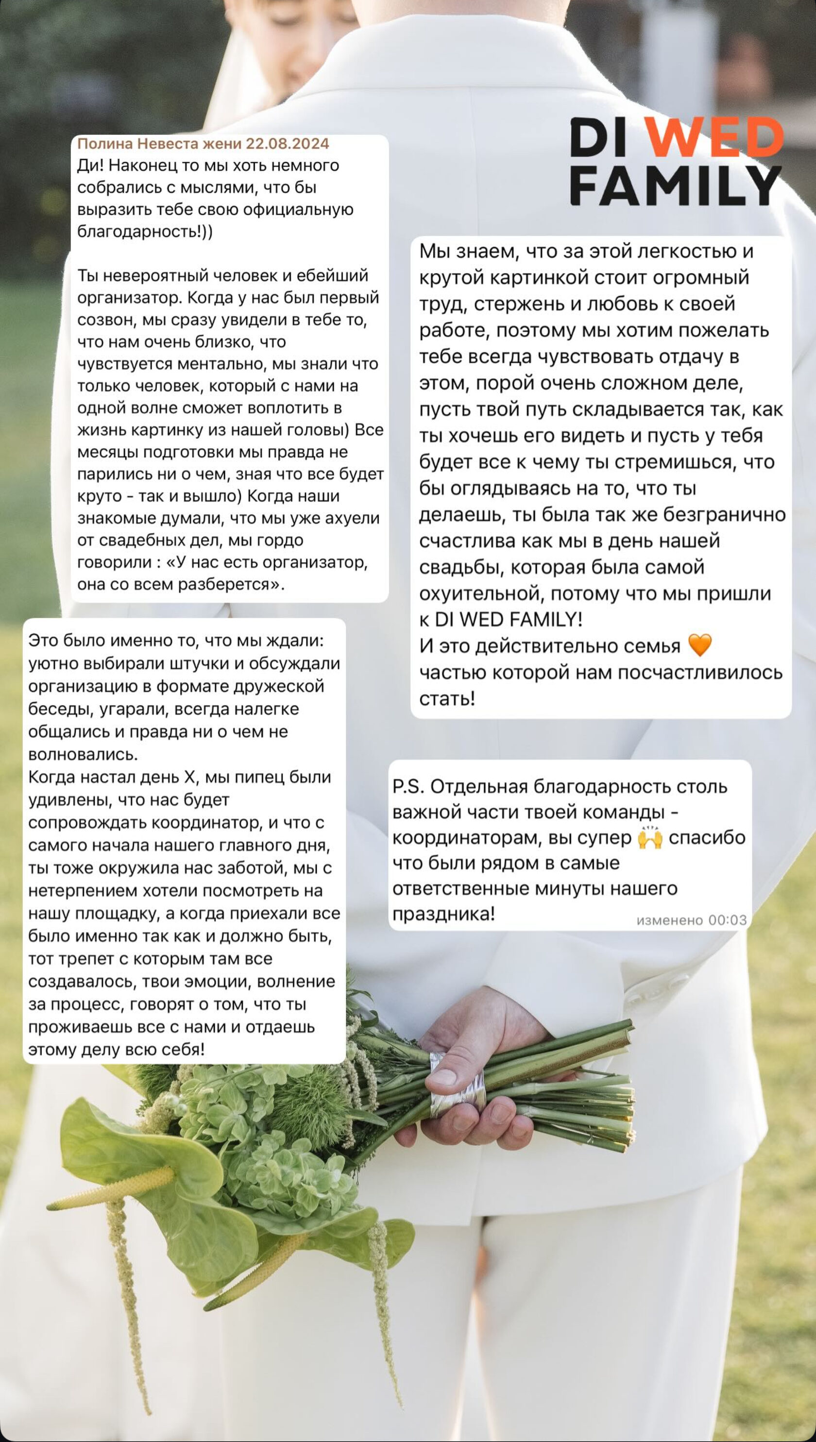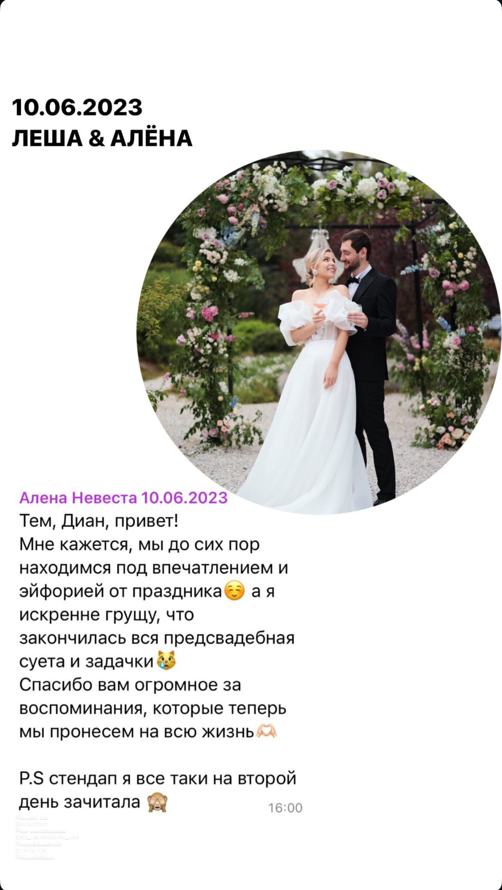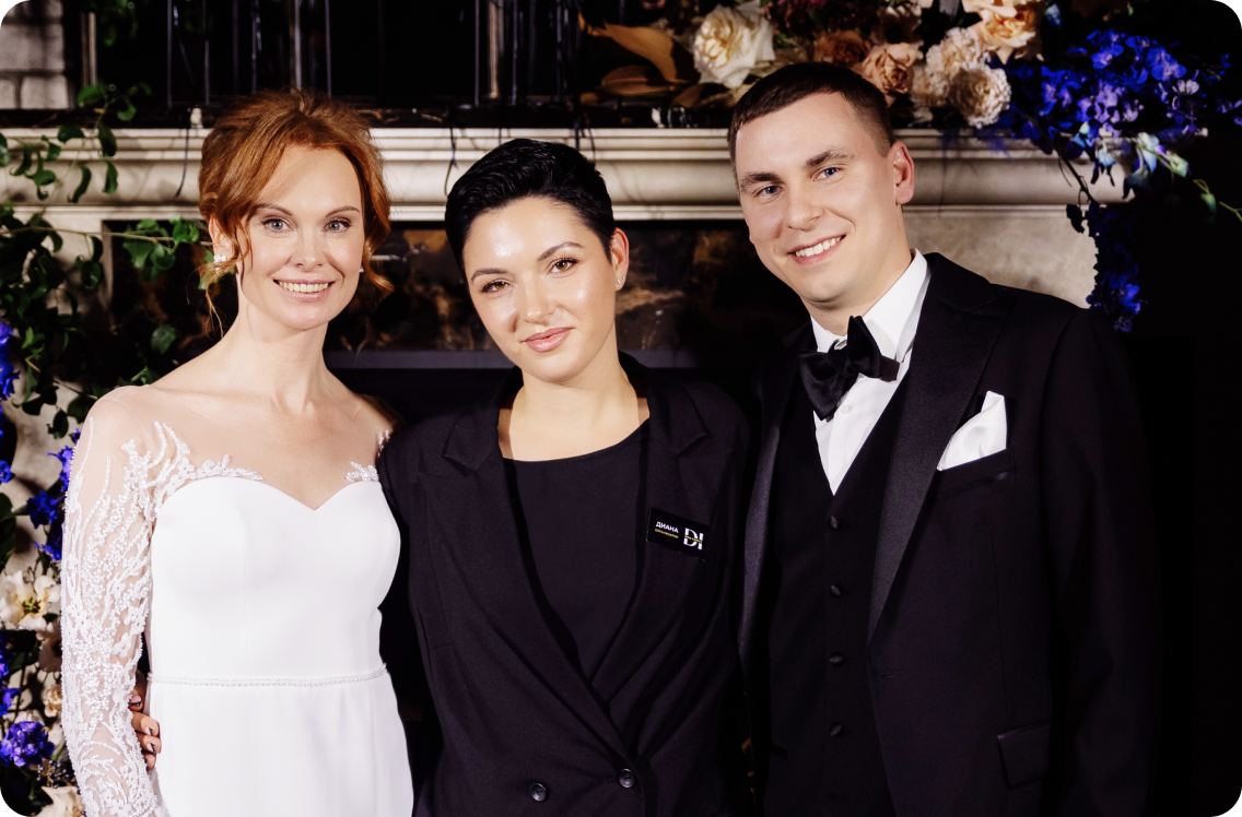 Наша цель — создание индивидуального события для Вас и про Вас. Чтобы ваша свадьба была уникальной, нам важно узнать о каждом из вас, вашу историю знакомства, интересы, увлечения, хобби, которые помогут нам в воплощении ваших мечт и раскрытии наших идей для Вас.